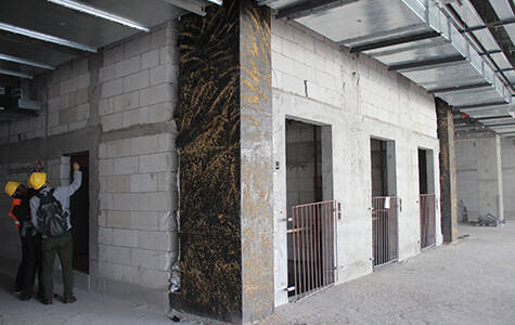 The office building is retrofitting into a hospital, using carbon fiber reinforced polymer(CFRP) sheet and steel plate bonding adhesive