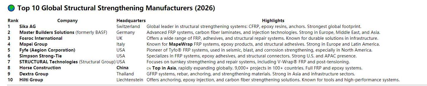 Why Horse Entered Top 10 Global Structural Strengthening Materials?